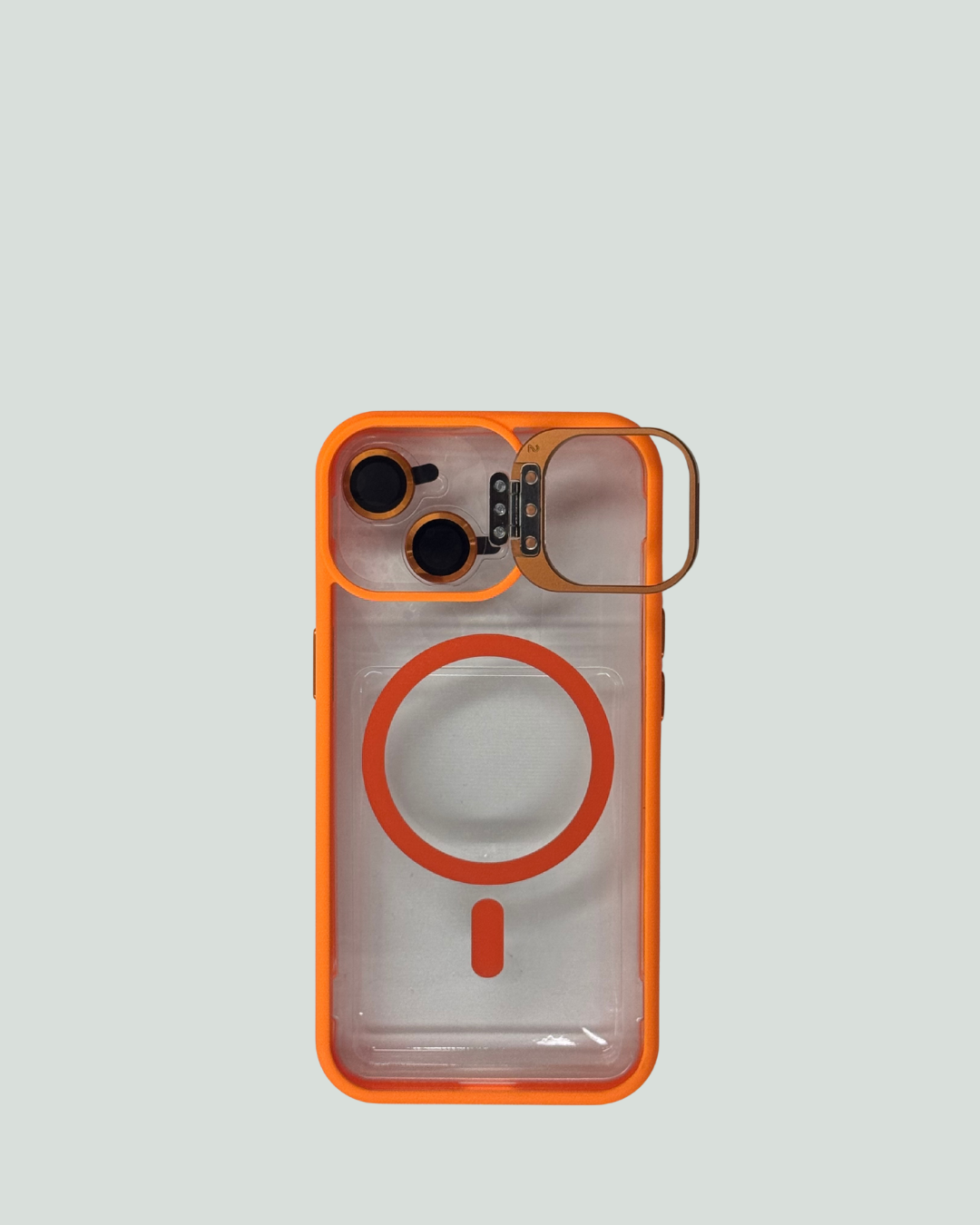 Detta snygga och funktionella mobilskal kombinerar stil och skydd i ett. Skalet har en orange ram och transparent baksida med inbyggd MagSafe-kompatibilitet, vilket gör det enkelt att använda med MagSafe-laddare och tillbehör.