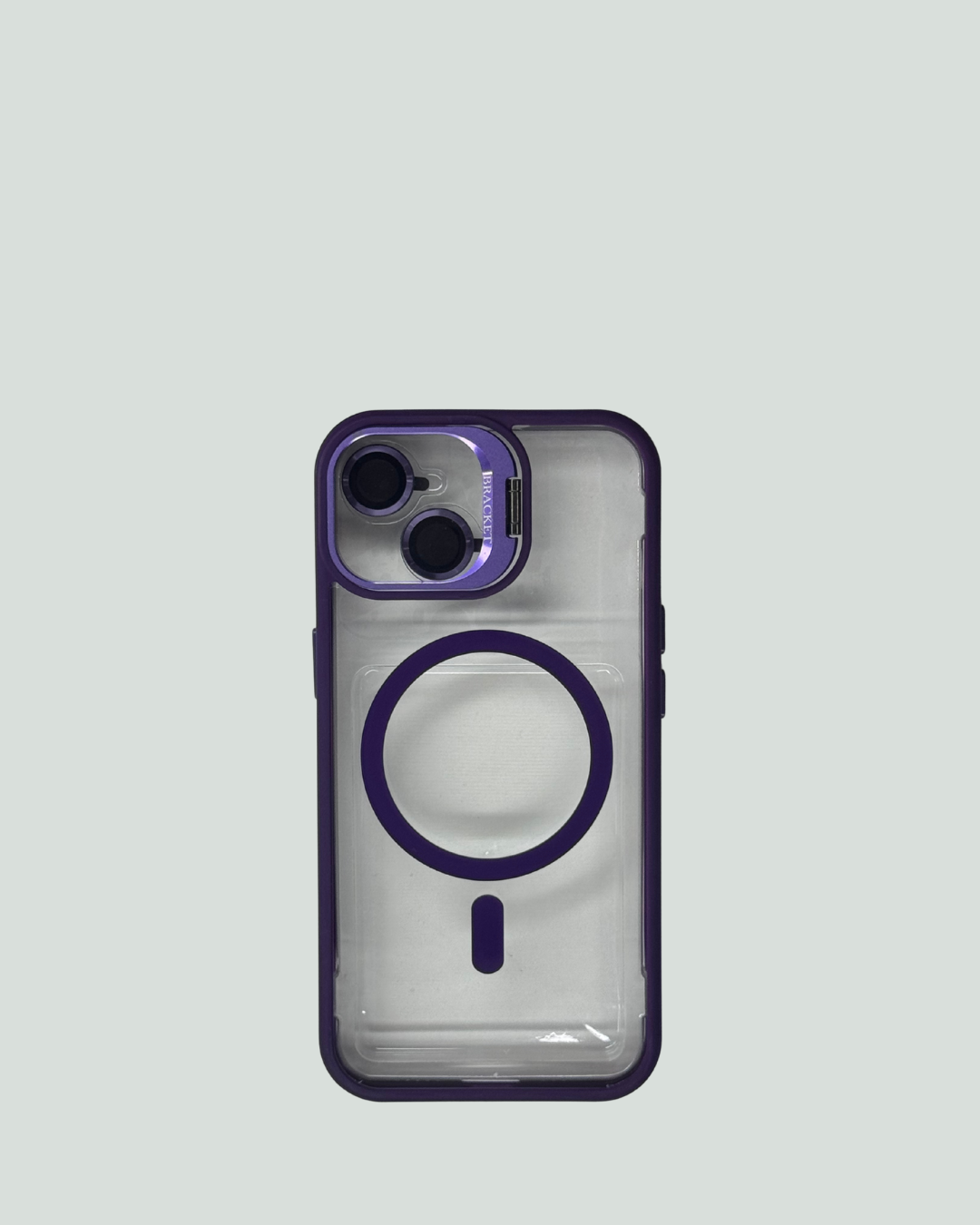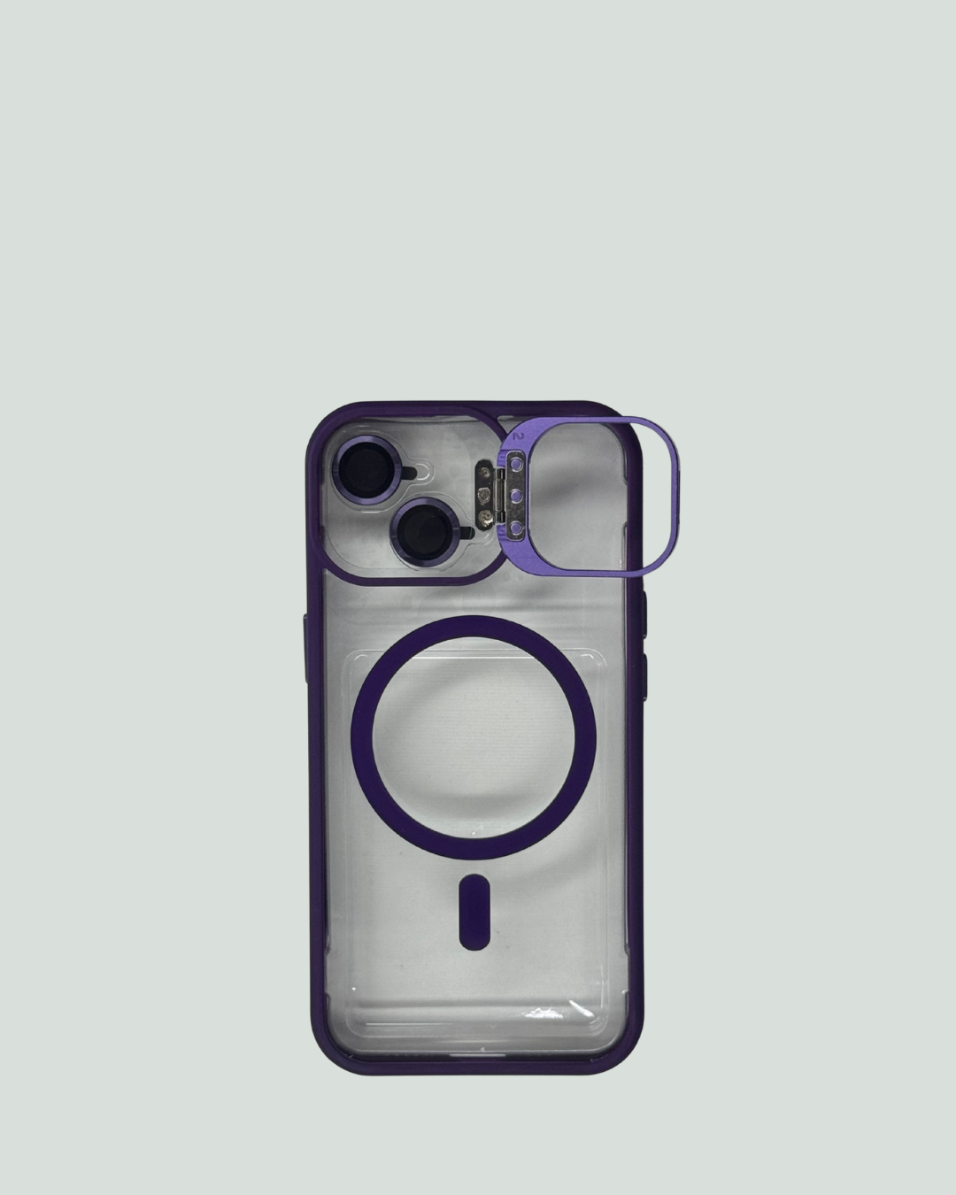 Detta snygga och funktionella mobilskal kombinerar stil och skydd i ett. Skalet har en lila ram och transparent baksida med inbyggd MagSafe-kompatibilitet, vilket gör det enkelt att använda med MagSafe-laddare och tillbehör.
