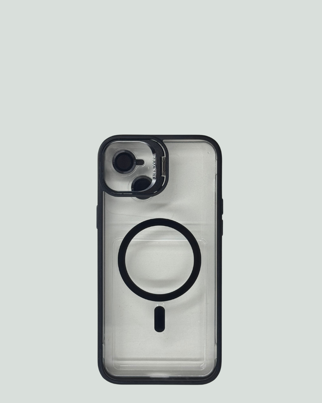 iPhone 15/14 Plus MagSafe Mobilskal med Kameraskydd & Ställ – Transparent Baksida