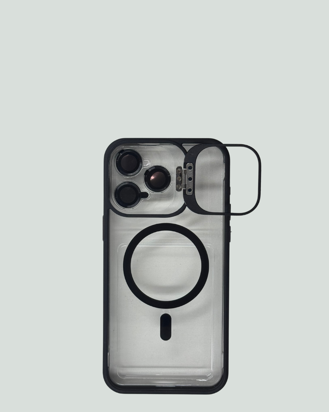iPhone 15 Pro Max MagSafe Mobilskal med Kameraskydd & Ställ – Transparent Baksida