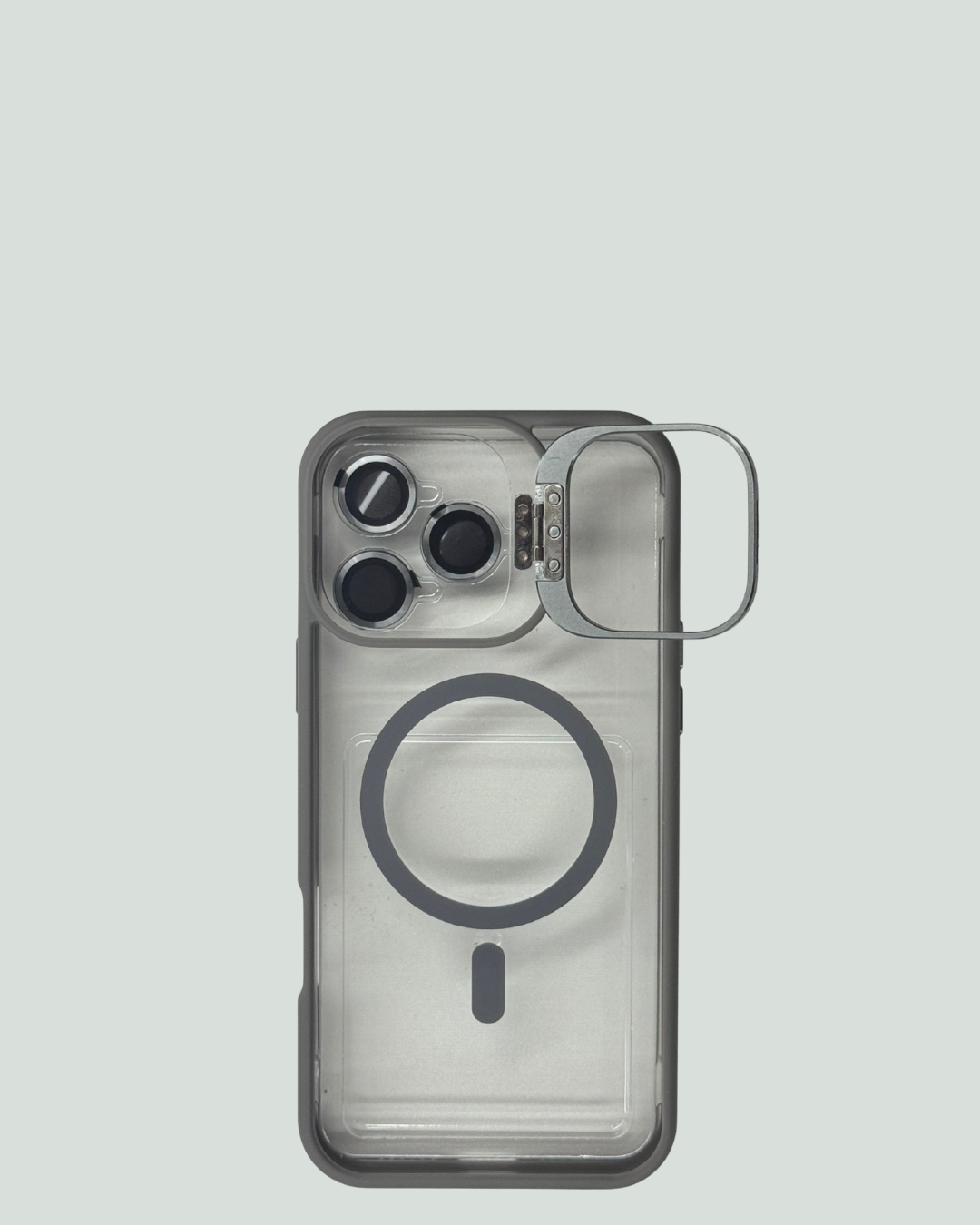 iPhone 16 Pro Max MagSafe Mobilskal med Kameraskydd & Ställ – Transparent Baksida